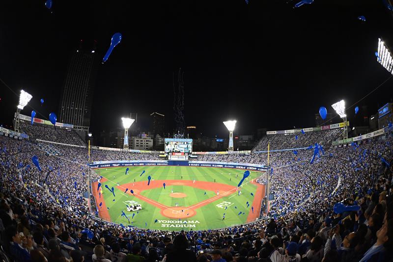 横浜スタジアムは34,000人余りの観客席を保有しています。ゲーム中は攻守交替や選手交代の合間に通信需要が急増します。