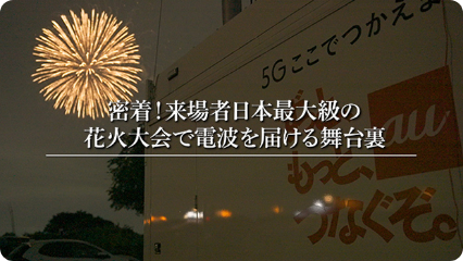 auでは、フェスや花火大会などのイベントで快適に携帯電話サービスをご利用いただけるように、車載型・可搬型の基地局で電波強化対策を行っています。