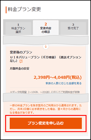 - 新規契約または機種変更と同時にお申し込みの場合、料金プランは加入日または変更日当日から適用となります(基本使用料/データ定額料は日割り)。料金プランのみの変更、持ち込み機種変更の場合は、翌月から適用となります。ただし、ケータイからスマホへ変更など、機種の種類変更を伴う場合は、お申し込み日から適用となります(基本使用料/データ定額料は日割り)。月途中でのご解約などの場合、日割りとはならず満額がかかります。