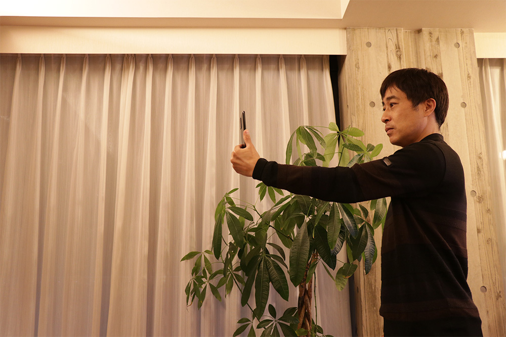 「アクティブモード」を選択するとスマートフォンのカメラが起動し、表示される手順に従って画面をタップしていくとカメラが映し出す現実空間に仮想の青いドアが出現。