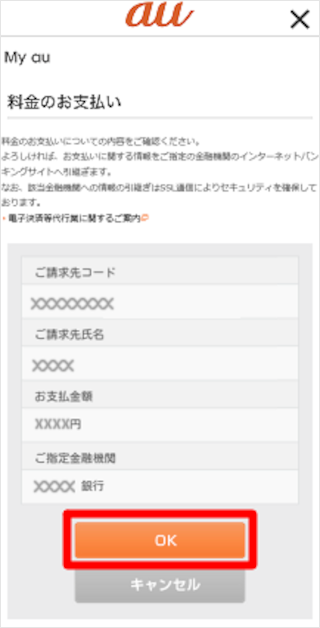 お支払い内容に誤りがないことを確認し、[OK]をタップします。