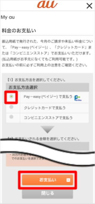 [Pay-easy(ペイジー)で支払う]と、[今回お支払いされる金額]にチェックを入れます。