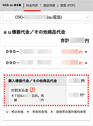 分割支払金残額は、My au(Web)のWEB de 請求書で確認できます。