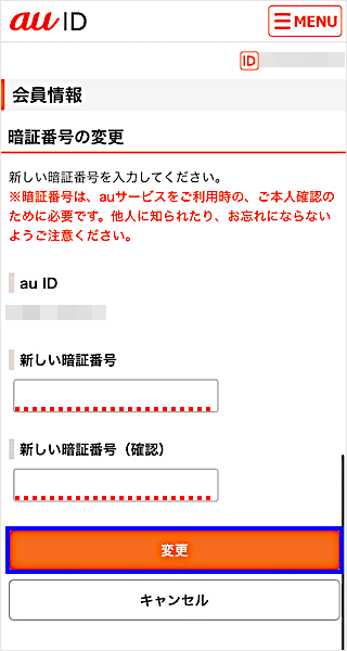 auご契約時にお決めいただいた4桁の暗証番号は、「au ID会員情報サイト」で変更できます。