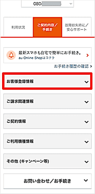 [お客様登録情報]をタップします。