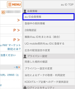 [au ID会員情報]をタップします。