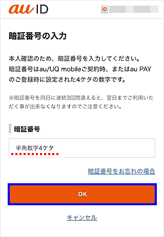 au IDのパスワードを入力し[OK]をタップします。