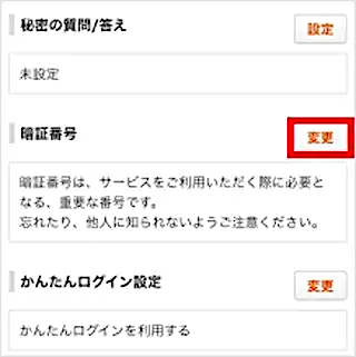 暗証番号の欄の[変更]をタップします。