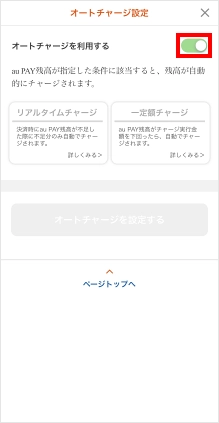 「オートチャージを利用する」のスイッチをタップします。