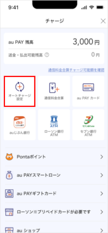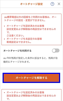 「au PAY アプリ」でオートチャージの解除ができます。