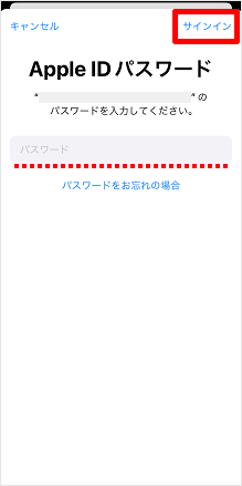 Apple Accountのパスワードを入力し、[サインイン]をタップします。 ※この画面は利用状況によって表示されない場合があります。
