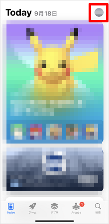 [アカウントアイコン]をタップします。 ※設定したアイコン、もしくはユーザー名の頭文字が表示されます。