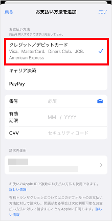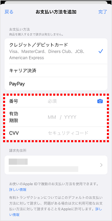 カード番号/有効期限/CVVを入力します。
