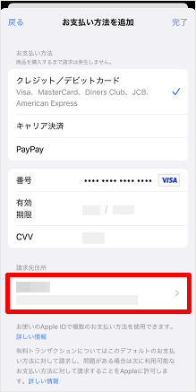 続いて、請求先情報を変更する場合は、「請求先住所」項目の[ユーザー情報]をタップします。 ※請求先情報を変更しない場合は、[完了]をタップし、手順12に進みます。