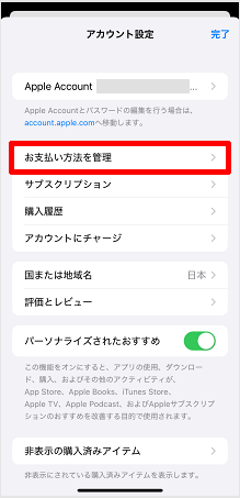 [お支払い方法を管理]をタップします。