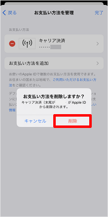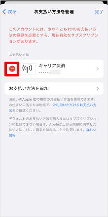 削除したい支払い方法の左側の[-]マークをタップします。
