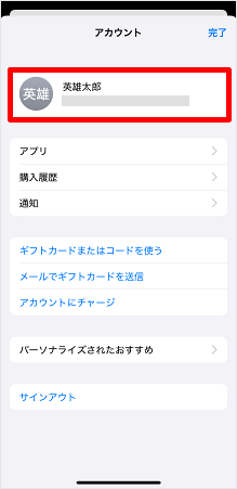 [名前]をタップします。