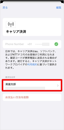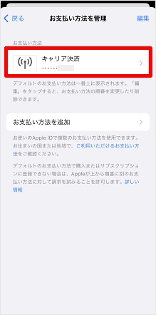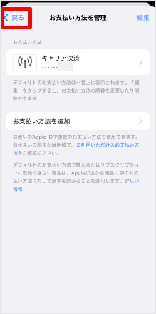 ※設定状況によって表示が異なります。この画面はお支払い方法を「キャリア決済」に設定している場合の表示です。