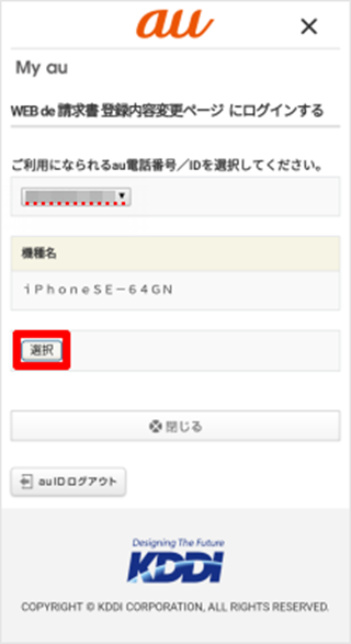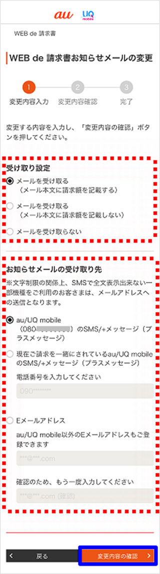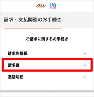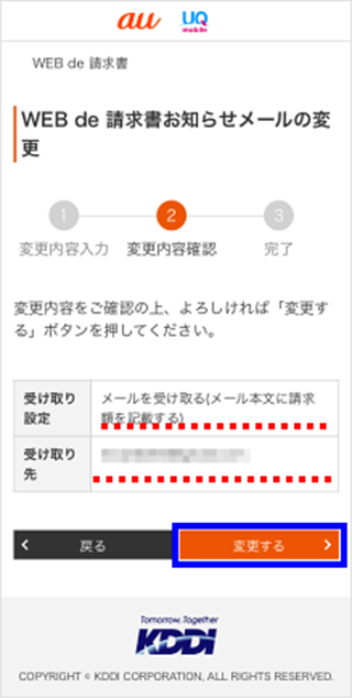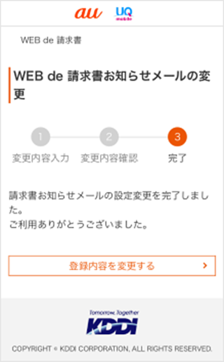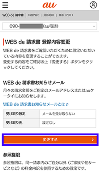 「My au(Web)」のWEB de 請求書で確認/変更ができます。