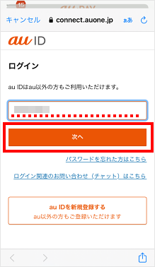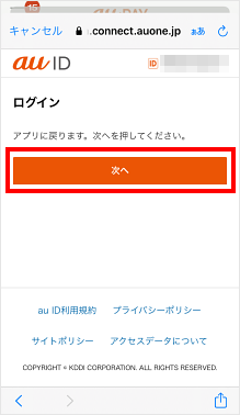 au IDを入力し、[次へ]をタップします。