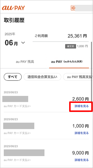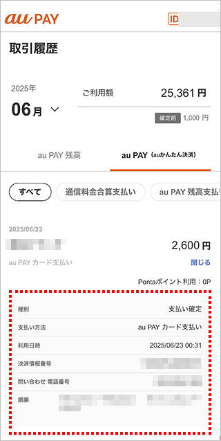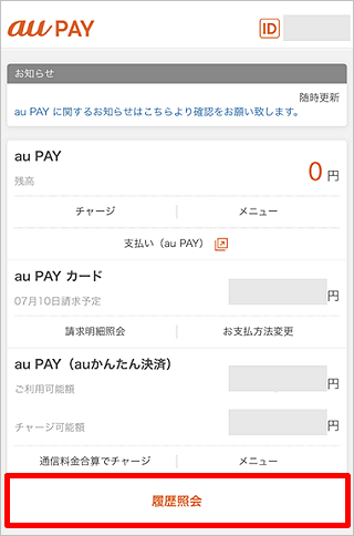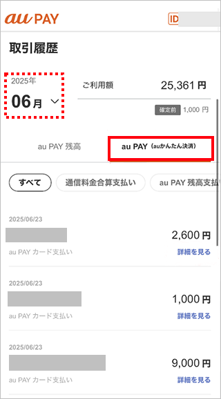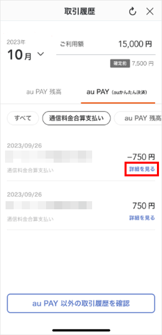 【au PAY(auかんたん決済)】過去の利用履歴を確認する方法を教えてください