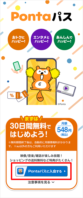 [Pontaパスに入会する]をタップします。