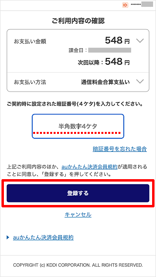 ※au ID、パスワードでログインしてください。