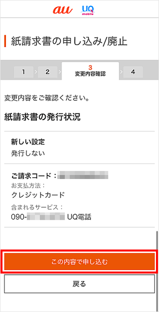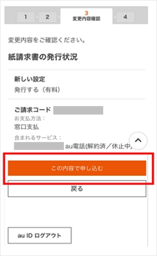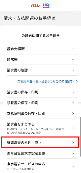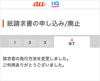 My au(Web)の請求・支払い関連のページで、紙請求書廃止をお申し込みいただけます。