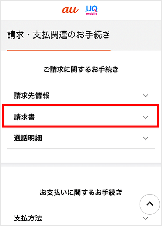 My au(Web)の請求・支払い関連のページで、紙請求書をお申し込みいただけます。
