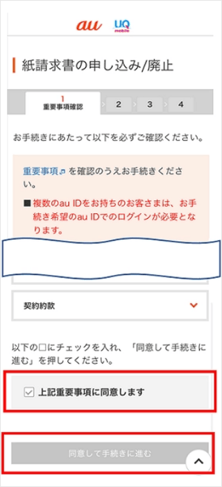 「上記重要事項に同意します」にチェックをつけ、[同意して手続きに進む]をタップします。