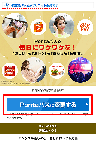 [Pontaパスに変更する]をタップします。