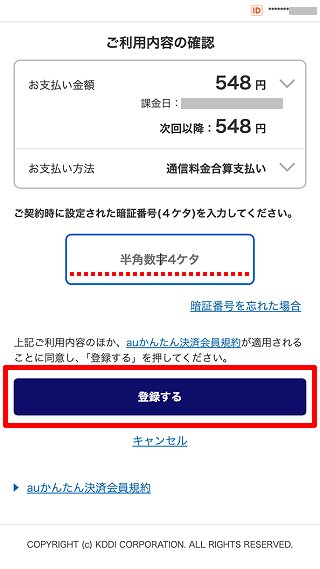 ※au ID、パスワードでログインしてください。
