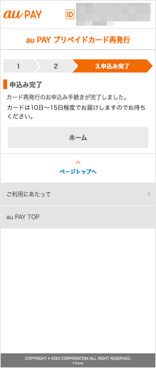 au PAY プリペイドカード再発行ページで、有効期限を更新した新しいカード(プラスチックカード)をお申し込みいただけます。