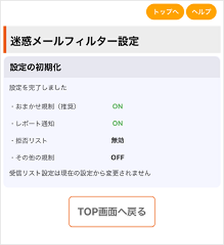 以上で、迷惑メールフィルターの初期化が完了しました。