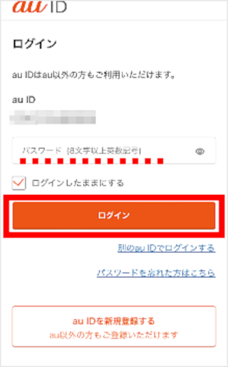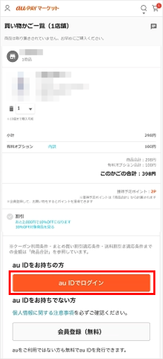 買い物かご一覧画面で[au IDでログイン]をタップします。