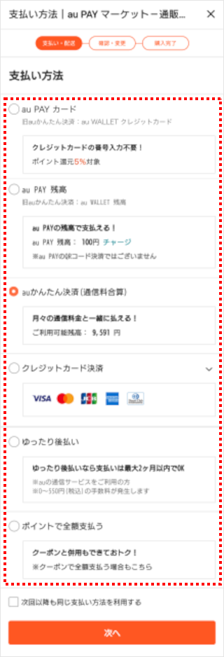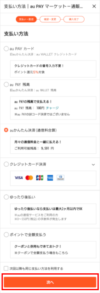 ※前回のご購入時に「次回以降の購入でも利用する」にチェックを入れていた場合など、この画面が表示されないことがあります。