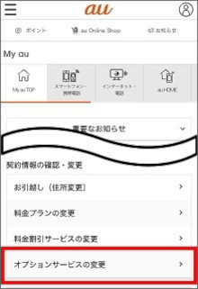 「契約情報の確認・変更」項目の[オプションサービスの変更]をタップします。