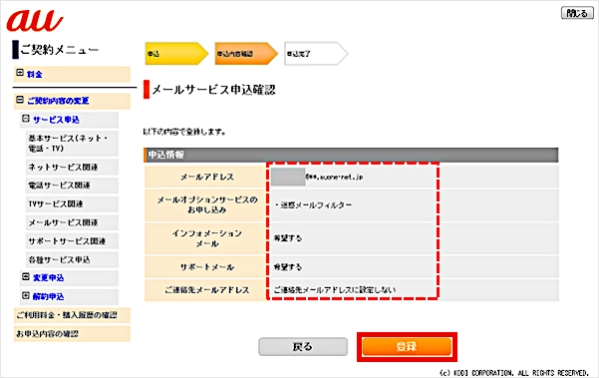 申し込み内容を確認して、[登録]をクリックします。