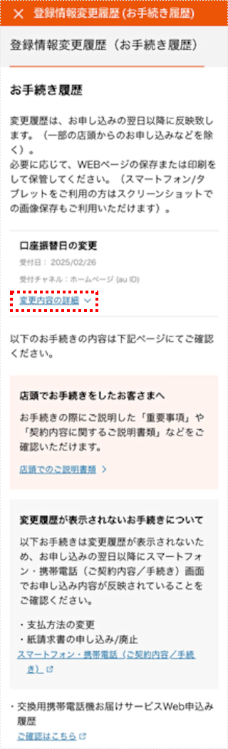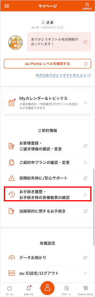 「My au(アプリ)」で、直近6カ月のお手続き履歴を確認できます。