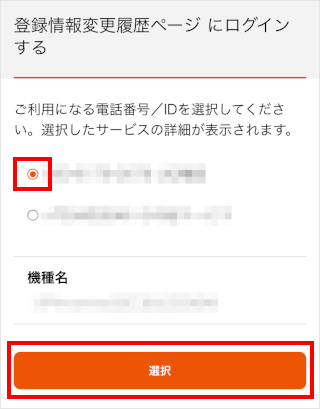 確認したい「電話番号/ID」のチェックボックスをタップしてチェックを入れ、[選択]をタップします。