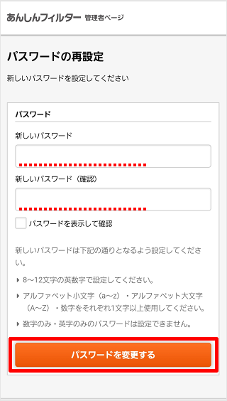 新しいパスワードを2回入力して、[パスワードを変更する]をタップします。