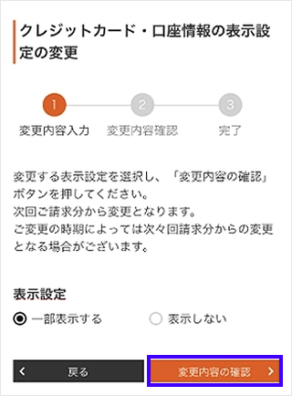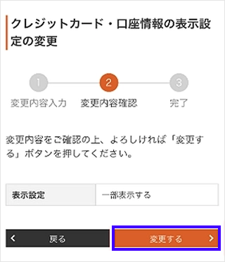 「クレジットカード・口座情報の表示設定」の[変更する]をタップします。