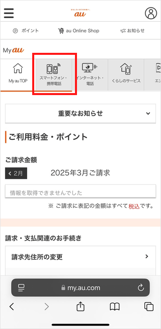 「My au(Web)」へアクセスし、au ID/パスワードでログインします。