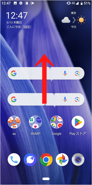 ホーム画面で下から上へスワイプします。
