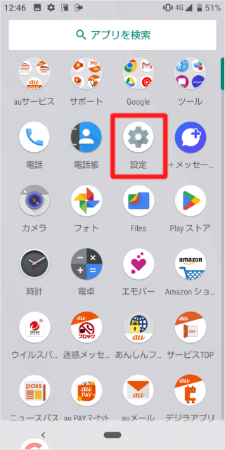 [設定]をタップします。 ※アプリ一覧の表示方法はメーカー・端末によって異なります。