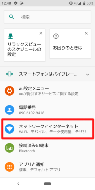 [ネットワークとインターネット]をタップします。