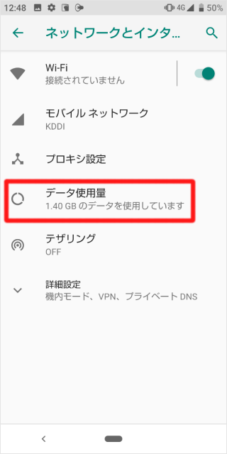 [データ使用量]をタップします。
