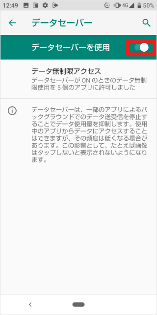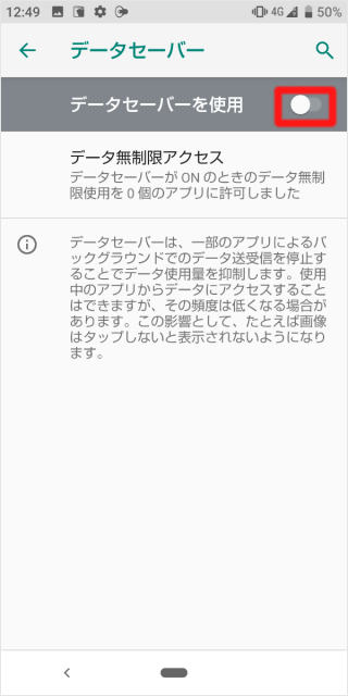 [データセーバーを使用]のスイッチをタップします。