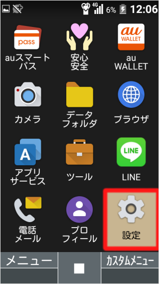 「設定」を選択し、[センターキー]を押します。