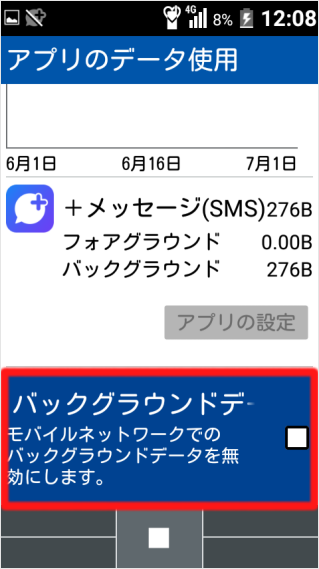 「バックグラウンドデータを制限する」を選択し、[センターキー]を押します。